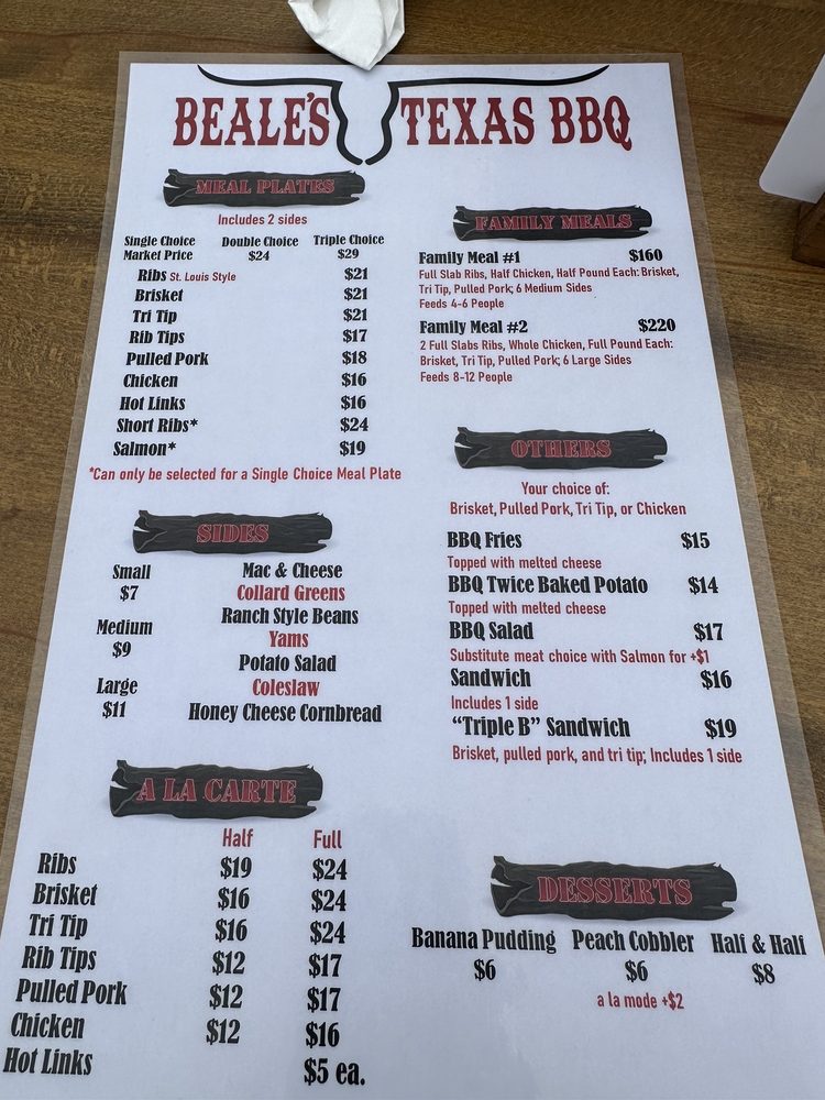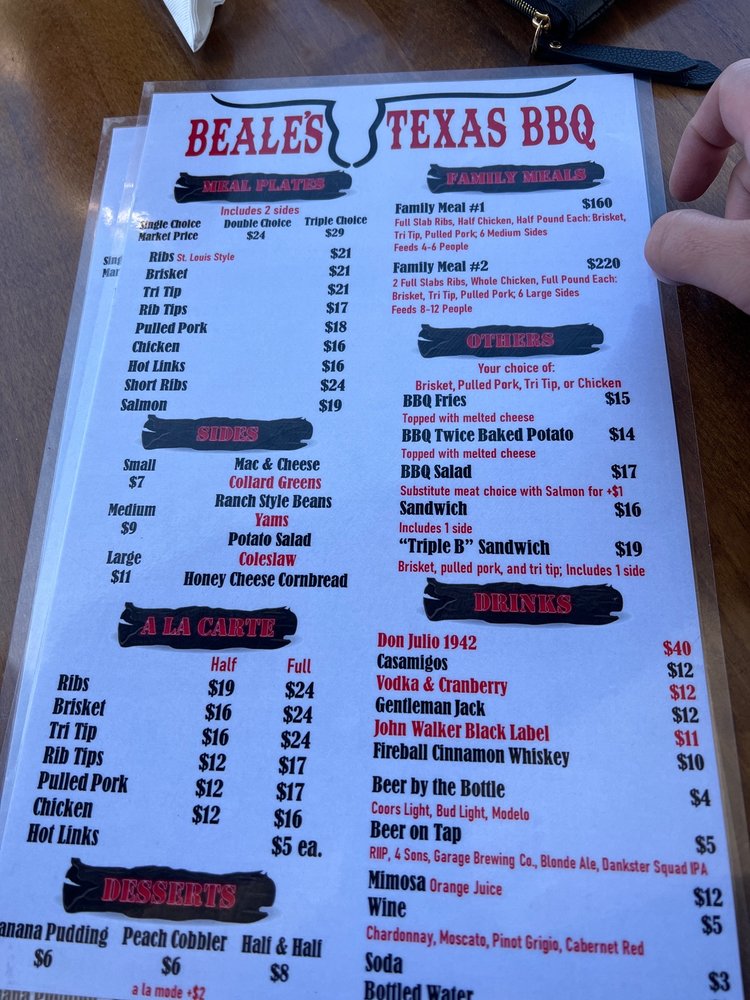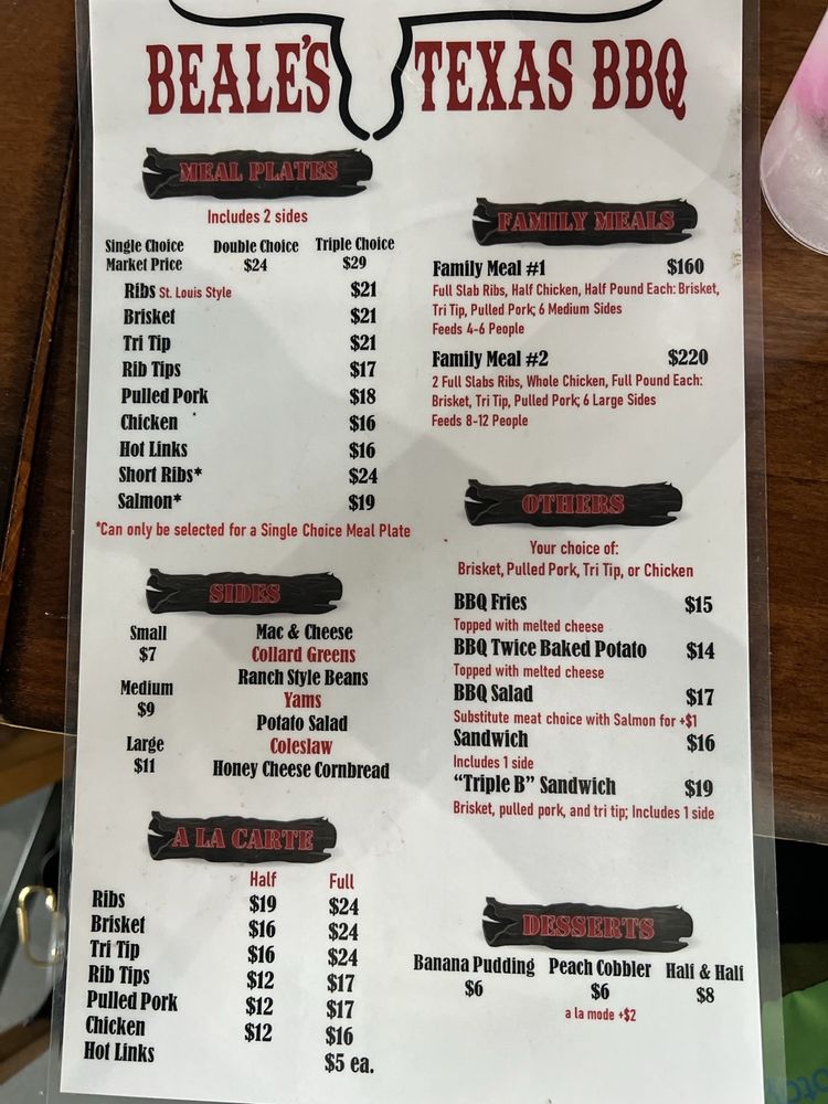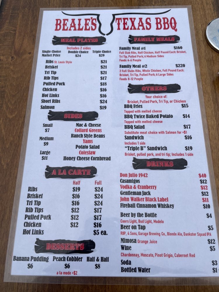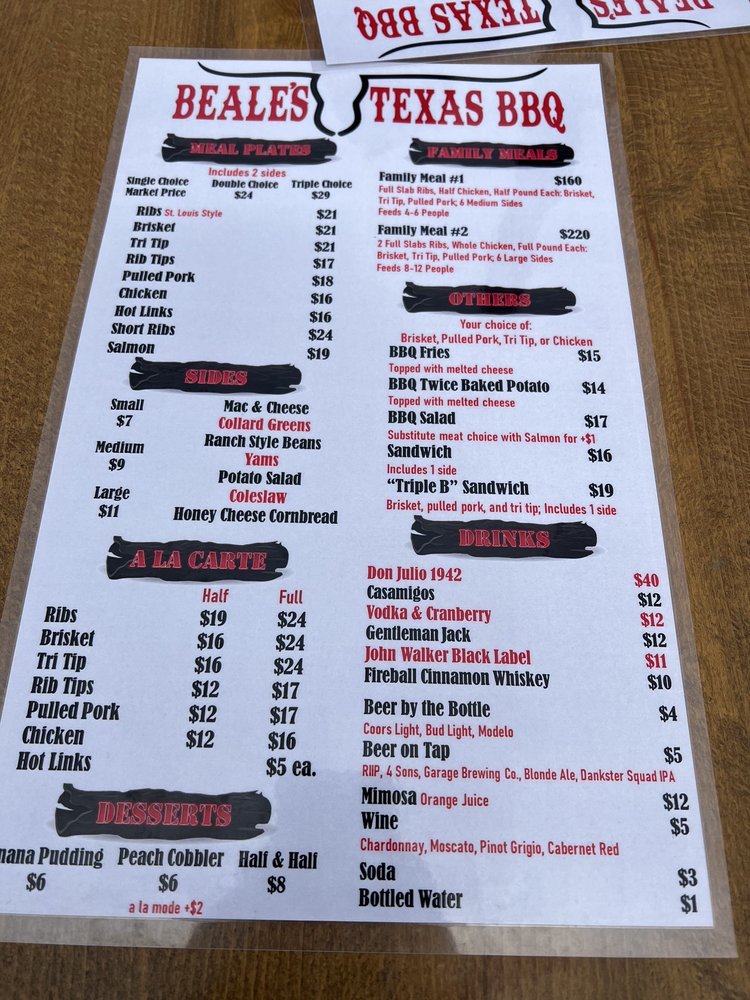 Beale’s Texas BBQ is a top-notch barbecue eatery located in Huntington Beach, California, specializing in authentic Texas-style flavors. Their menu features a variety of dishes, including classic smoked meats, hearty sides, and delectable desserts. The restaurant offers a range of amenities, such as takeout, delivery, outdoor seating, and a full bar with happy hour specials. Beale’s Texas BBQ is known for its welcoming atmosphere, making it perfect for groups, families, and individuals alike. With options for vegetarians and meat-lovers alike, everyone can enjoy a satisfying meal at this establishment. The convenient location, excellent service, and mouthwatering dishes make Beale’s Texas BBQ a must-visit destination for barbecue enthusiasts in the area.